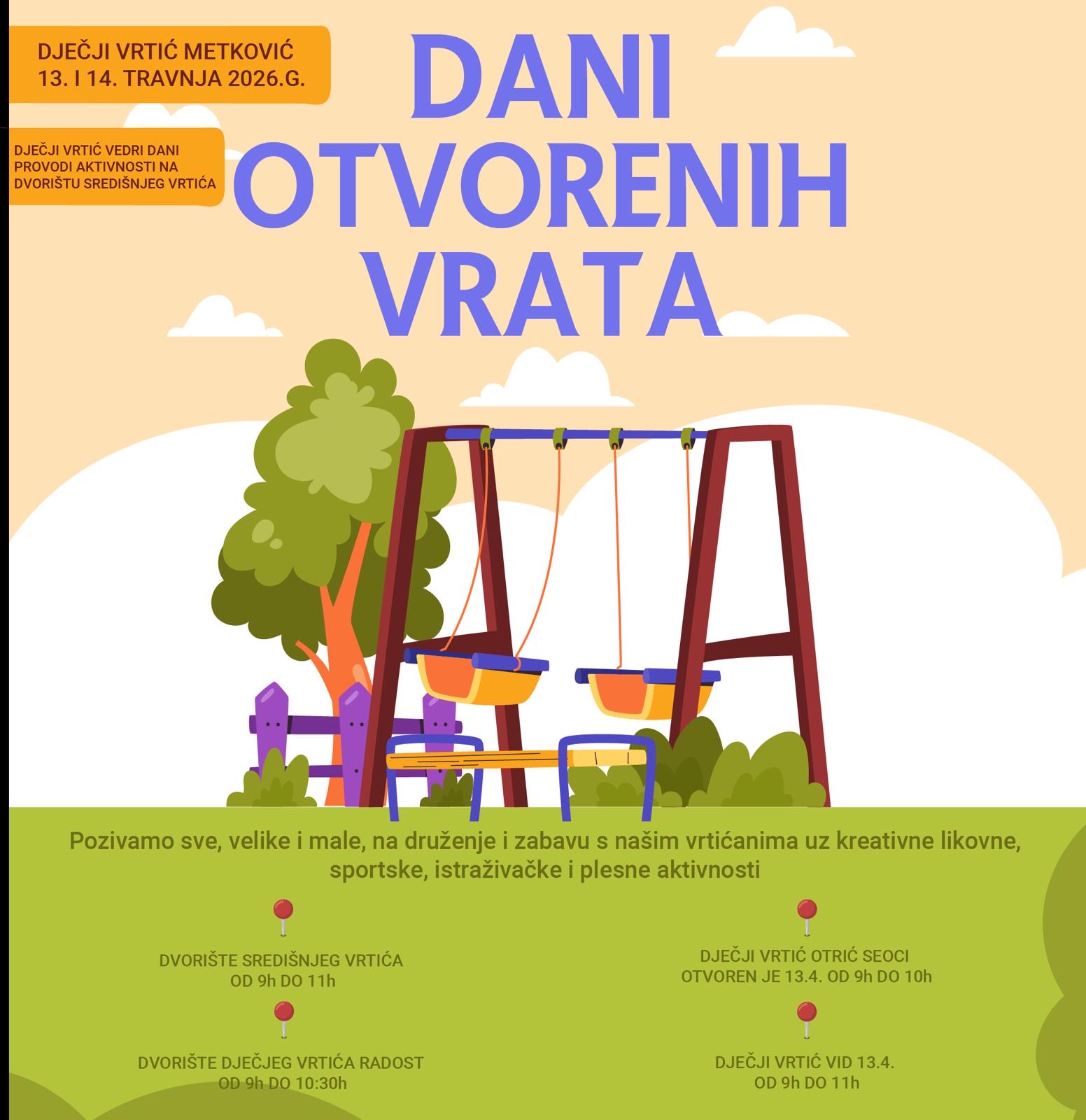 Pozivamo sve, velike i male na Dane otvorenih vrata naših vrtića, 13. i 14. ...