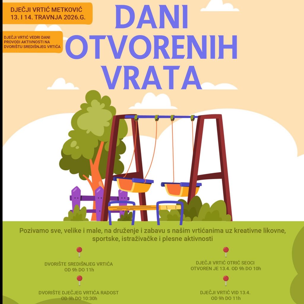 9 tra.2026 Dani otvorenih vrata Pozivamo sve, velike i male na Dane otvorenih vrata naših vrtića, 13. i 14. travnja! Više